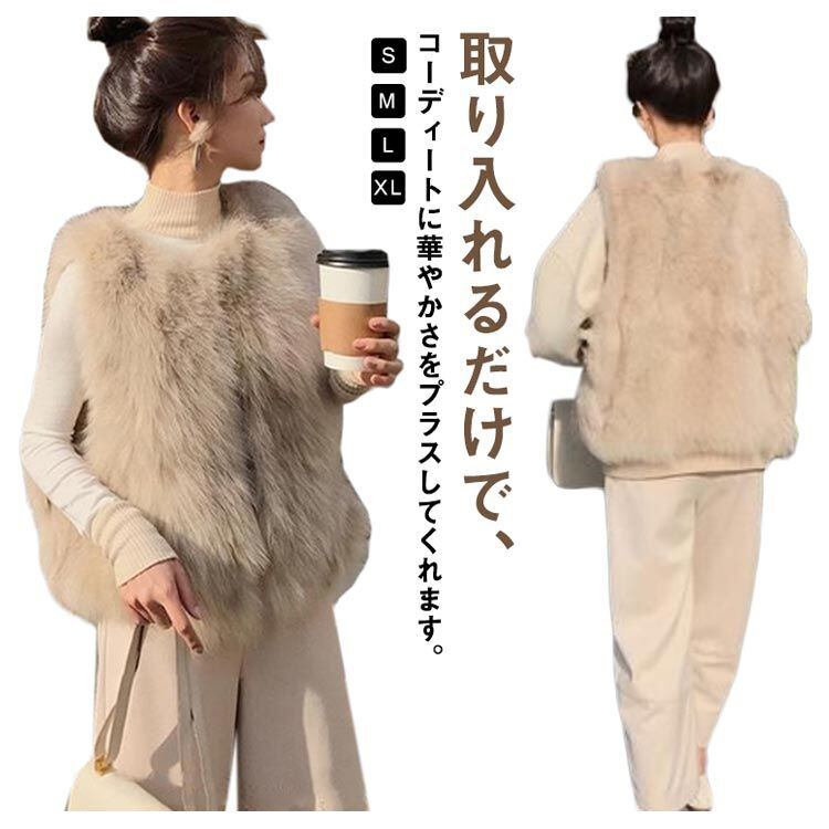 ファーベスト ジレ レディース ファーコート ファージャケット ノースリーブ フェイクファー エコファー ショート丈 ノーカラージャケット アウター 羽織り 秋冬 ふわふわ もこもこ レイヤード 重ね#mjx3904 | オキナ商店
