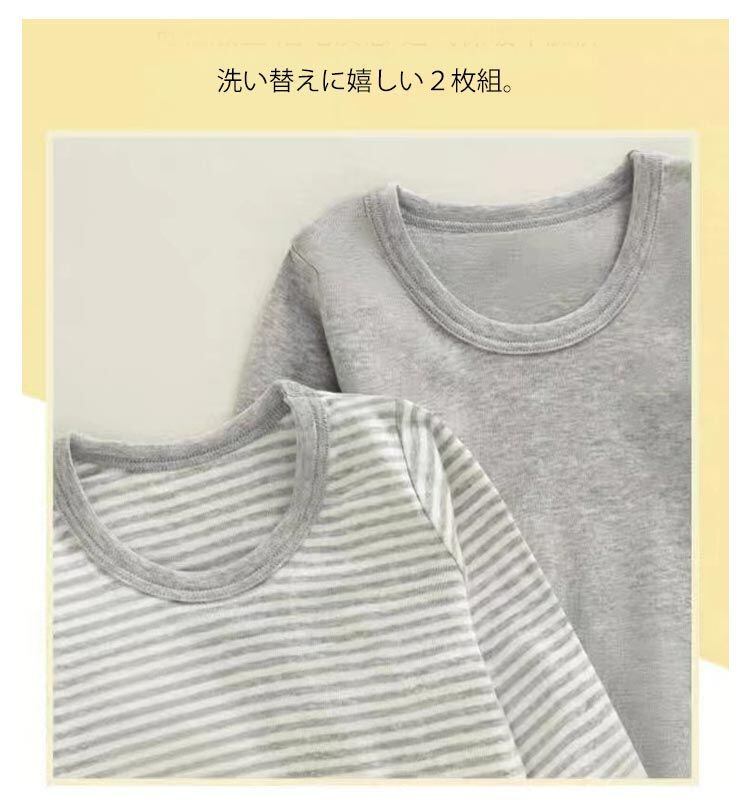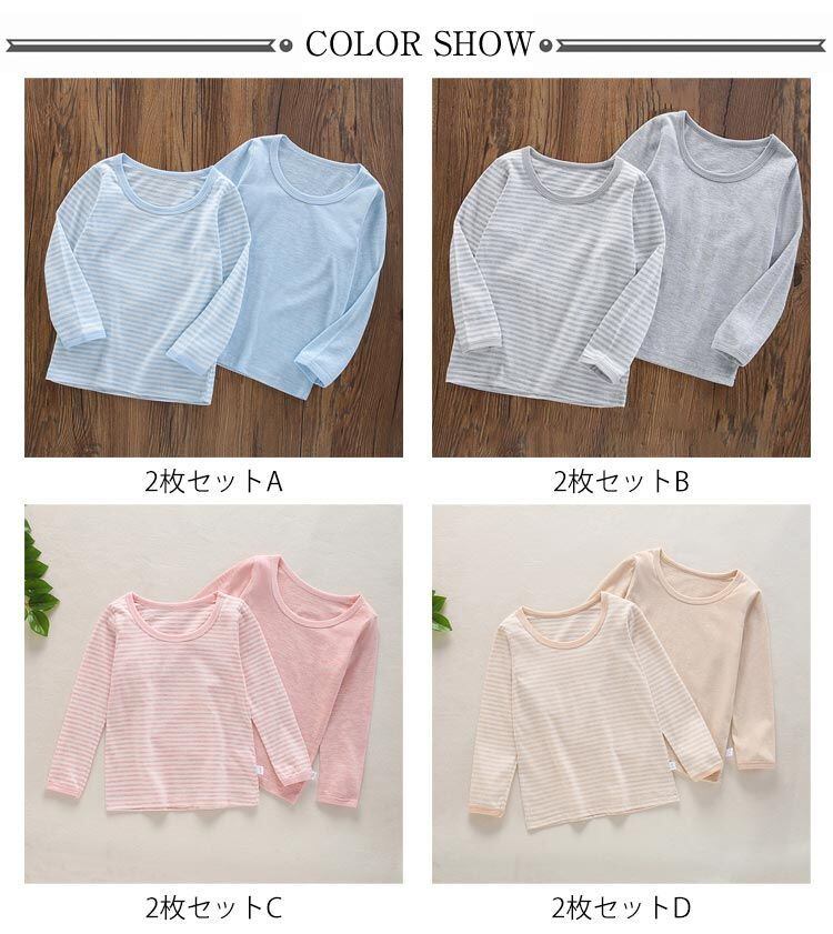 2枚セット インナーシャツ キッズ 子供 長袖 Tシャツ 肌着 綿 コットン ロンT ジュニア 女の子 男の子 中学生 小学生 無地 ボーダー柄 通園 通学 春 秋 冬 90 100 110 120 #lulum670 | オキナ商店