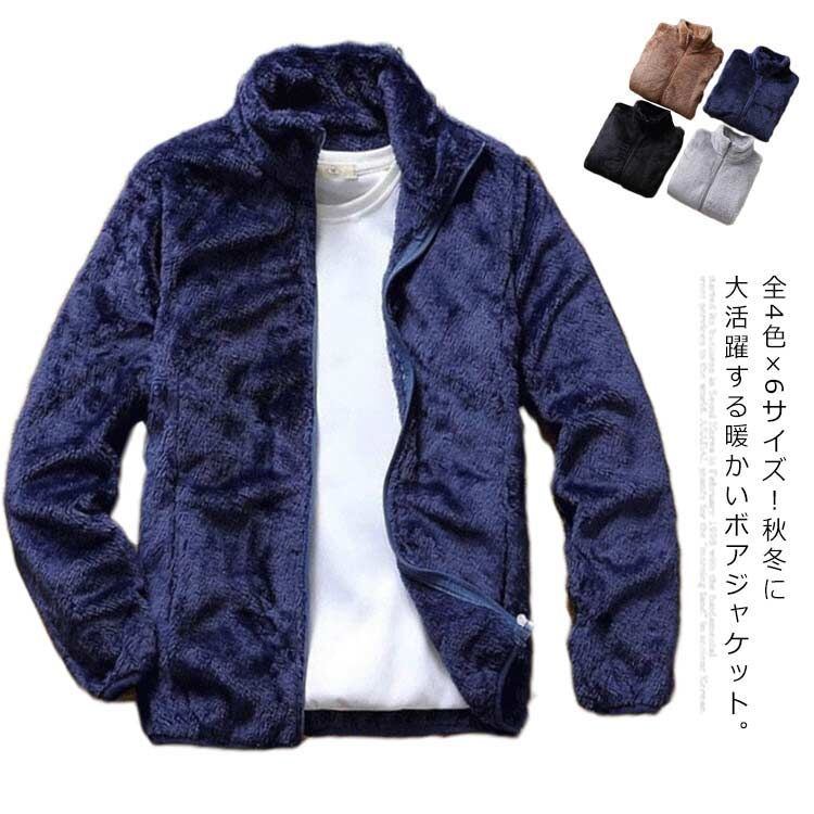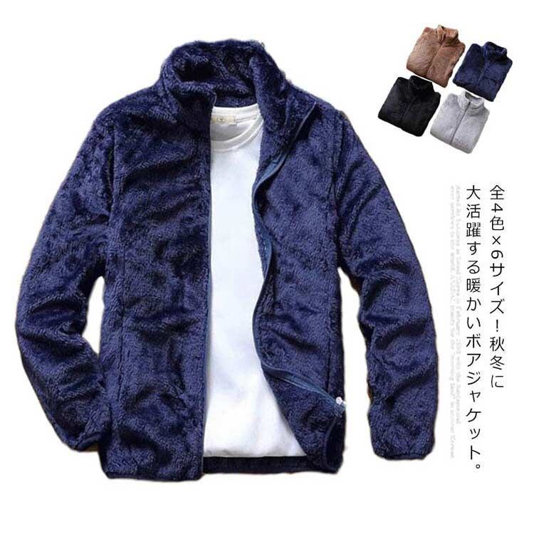 ボアジャケット メンズ フリースジャケット ブルゾン アウター ボア フリース ジャケット 立ち襟 メンズファション ふわふわ もこもこ 暖かい 大きいサイズ 秋冬 秋 冬#holy325 | オキナ商店