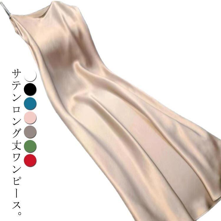 マキシワンピース 全7色×4サイズ 全7色×4サイズ ロング丈 サテンワンピース キャミソールワンピース ロングワンピース Aラインワンピース キャミワンピース キャミワンピ サテンキャミソール セク#mion0594338 | オキナ商店
