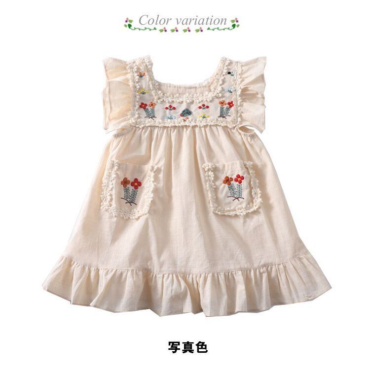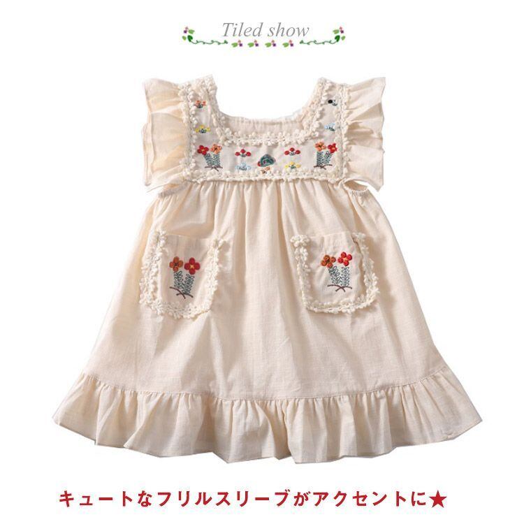 女の子 子供 夏ワンピース ノースリーブ ワンピース ワンピース ワンピース 刺繍 キッズ ワンピース フリルスリーブ ワンピース 子供ドレス フレアワンピース 夏 ベビー 刺繍 子供服#kikip585268 | オキナ商店