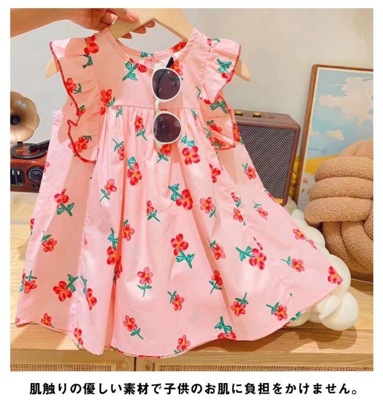 フリルスリーブ ワンピース 子供 ノースリーブ 花柄 夏ワンピース 女の子 ワンピース キッズ ワンピース 花柄 ワンピース 子供ドレス フレアワンピース 夏 ベビー ワンピース 子供服#kikip585266 | オキナ商店