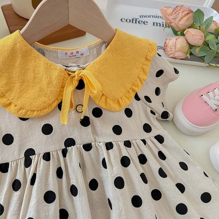 ワンピース ワンピース ドレス 子供ドレス ワンピース 女の子 夏ワンピース 半袖 キッズ ドット柄 子供 女の子 水玉柄 ガールズ フレアワンピース 丸襟 夏 ベビー ワンピース ワンピース 子供服#kikip585262 | オキナ商店