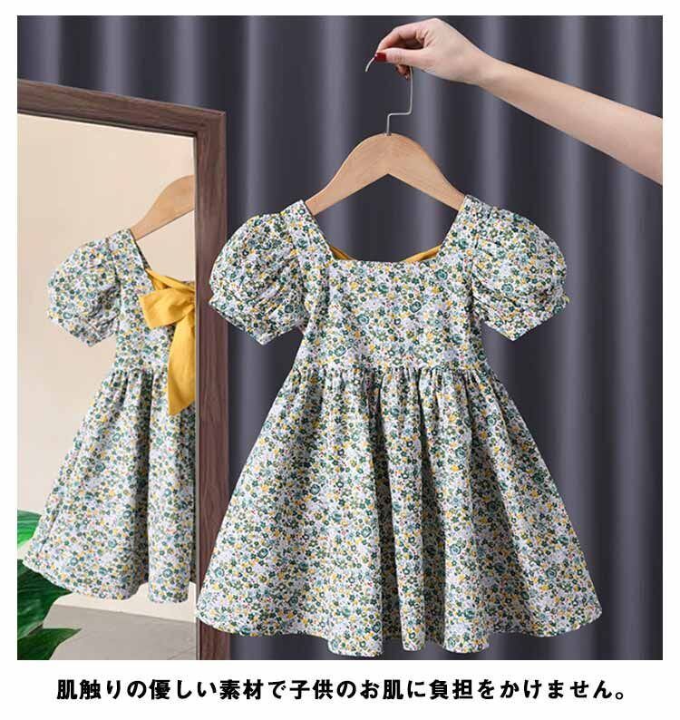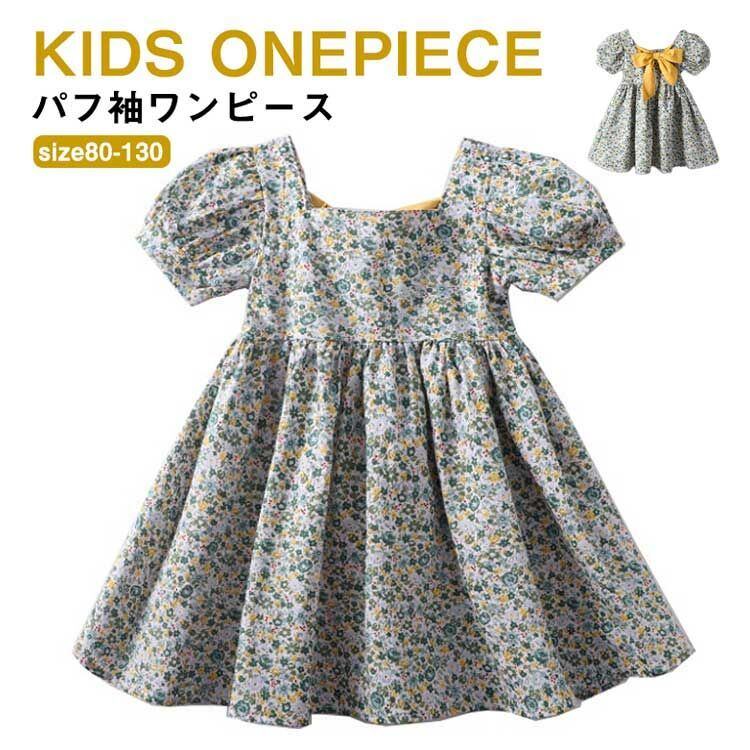 夏ワンピース フレアワンピース リボン ワンピース 子供ドレス ワンピース パフスリーブ 女の子 ドレス ワンピース 子供 花柄 キッズ 半袖 女の子 パフ袖 夏 ベビー ワンピース 女児 ガールズ #kikip585257 | オキナ商店