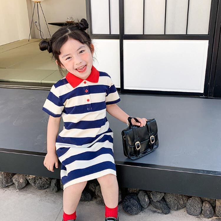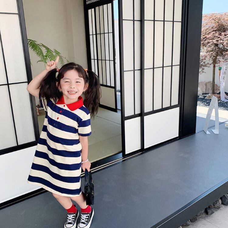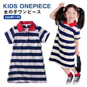 マーリン風 ワンピース ポロシャツ マーリン風 夏ワンピース Tシャツワンピース 女の子 ボーダー柄 ポロシャツ襟 半袖 ワンピース フレアワンピース 子供ワンピース キッズ ワンピース 夏#kikip585254 | オキナ商店