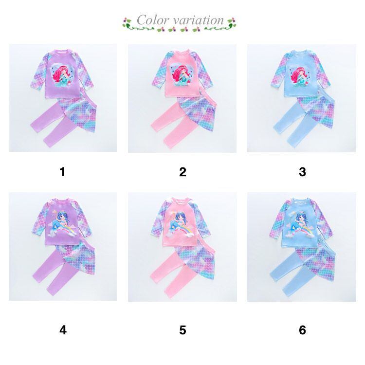 2点セット セパレート 長袖 水着 女の子 水着 キッズ 水着 水着 日焼け止め 上下セット 水着 ジュニア 水着 水着 女の子 セパレート 人魚姫 ベビー水着 マーメイド 人魚 キッズ 子供 水着 #kikip585249 | オキナ商店