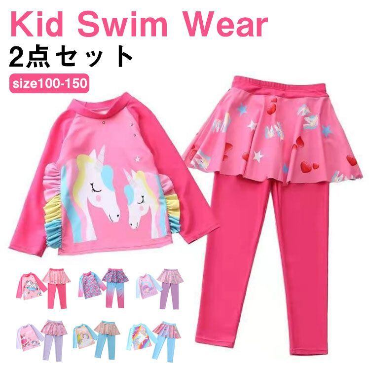 セパレート 水着 ベビー水着 水着 キッズ 女の子 水着 水着 ラッシュガード 長袖 上下セット 水着 2点セット 日焼け止め マーメイド ジュニア セパレート 人魚姫 子供 水着 ジュニア 水着 人#kikip585248 | オキナ商店