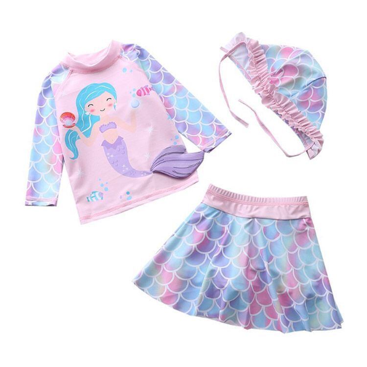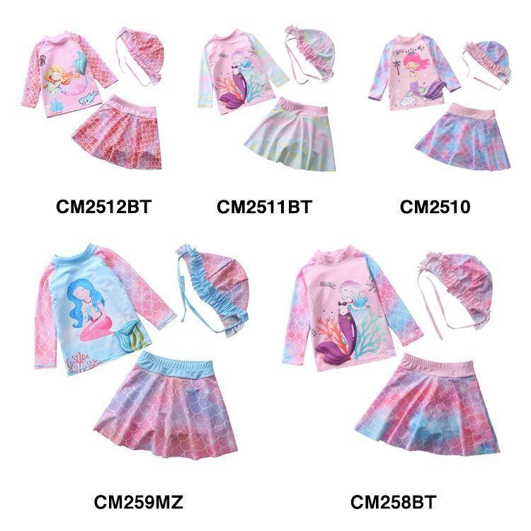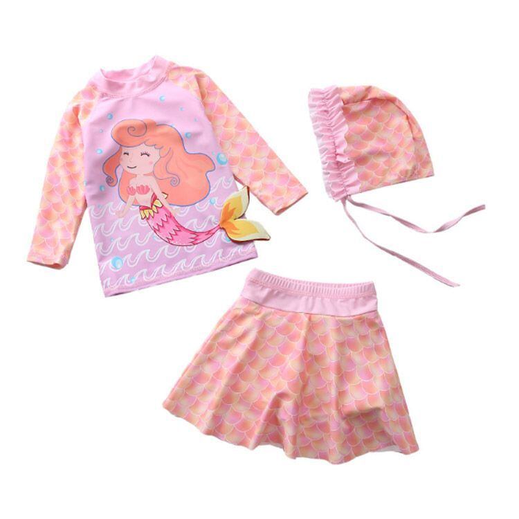 女の子 水着 キッズ セパレート セパレート 子供 ラッシュガード 長袖 上下セット 水着 3点セット ベビー水着 水着 水着 キャップ付き 人魚姫 水着 マーメイド 人魚 キッズ 水着 水着 日焼け#kikip585247 | オキナ商店