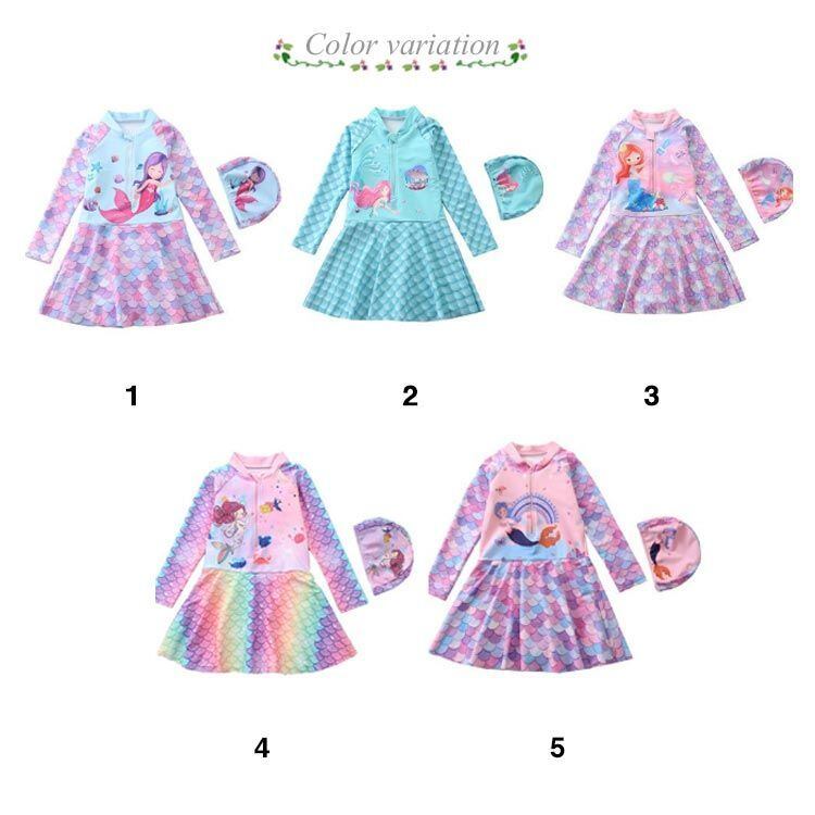 ワンピース マーメイド キャップ付き キッズ 人魚姫 フリル 2点セット 子供 水着 オールインワン 一体型 半袖 女の子 水着 ワンピース パンツ一体型 水着 ジュニア キャップ付き ワンピース ス#kikip585235 | オキナ商店
