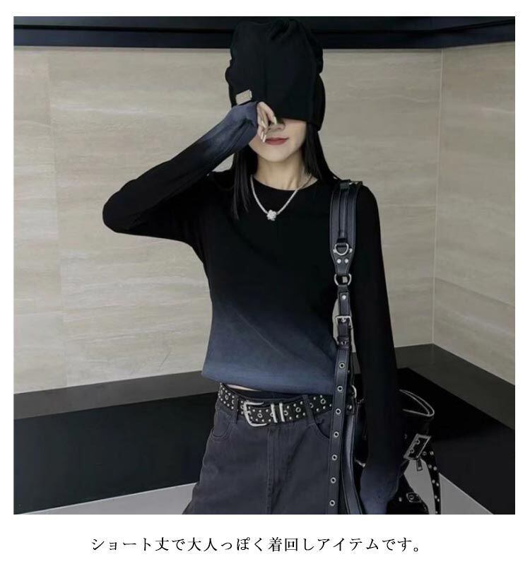 ラウンドネック グラデーション きれいめ 長袖 レディース おしゃれ tシャツ 長袖tシャツ 送料無料 トップス 送料無料 ビンテージ インナートップス 韓国ファッション S M L XL#alice582923 | オキナ商店