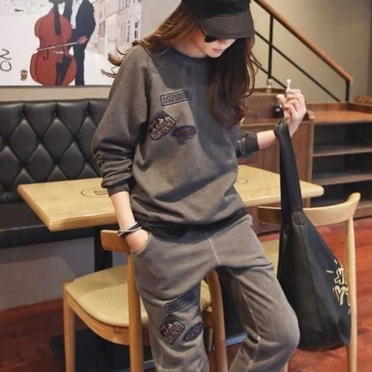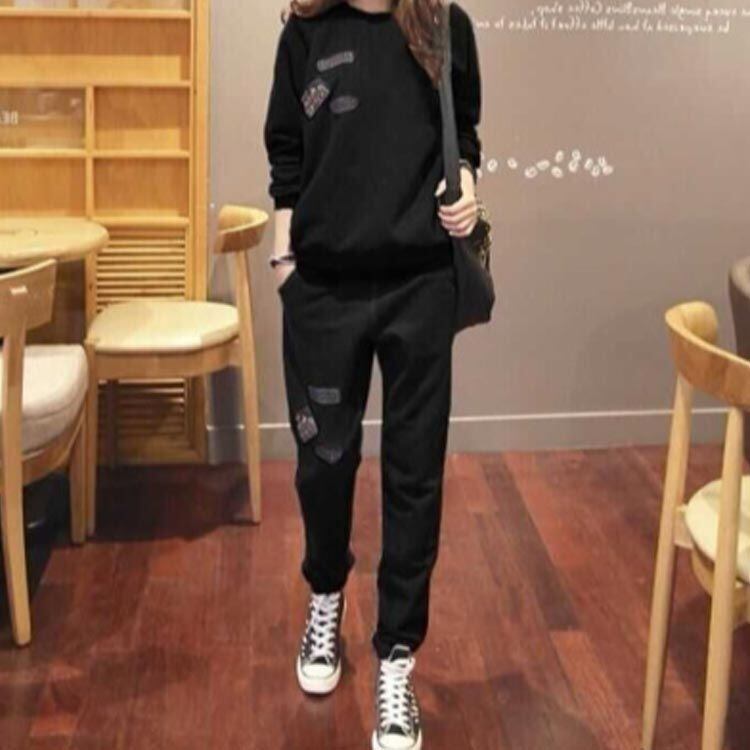 ロング丈 裏起毛 レディース セットアップ ラウンドネック 冬 長袖 上下セット ジャージ スウェット ゆったり カジュアル スポーツウェア 体型カバー レジャー ブラック セットアップ グレー 春 #alice582900 | オキナ商店