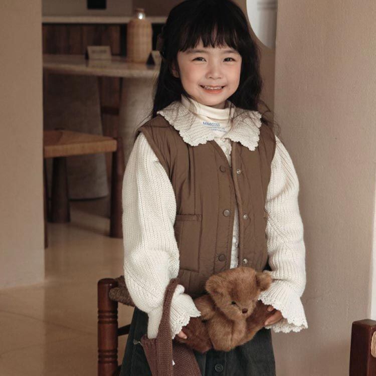 中綿入りで保温性もよく、スナップボタンでさっと羽織れやすいベスト。