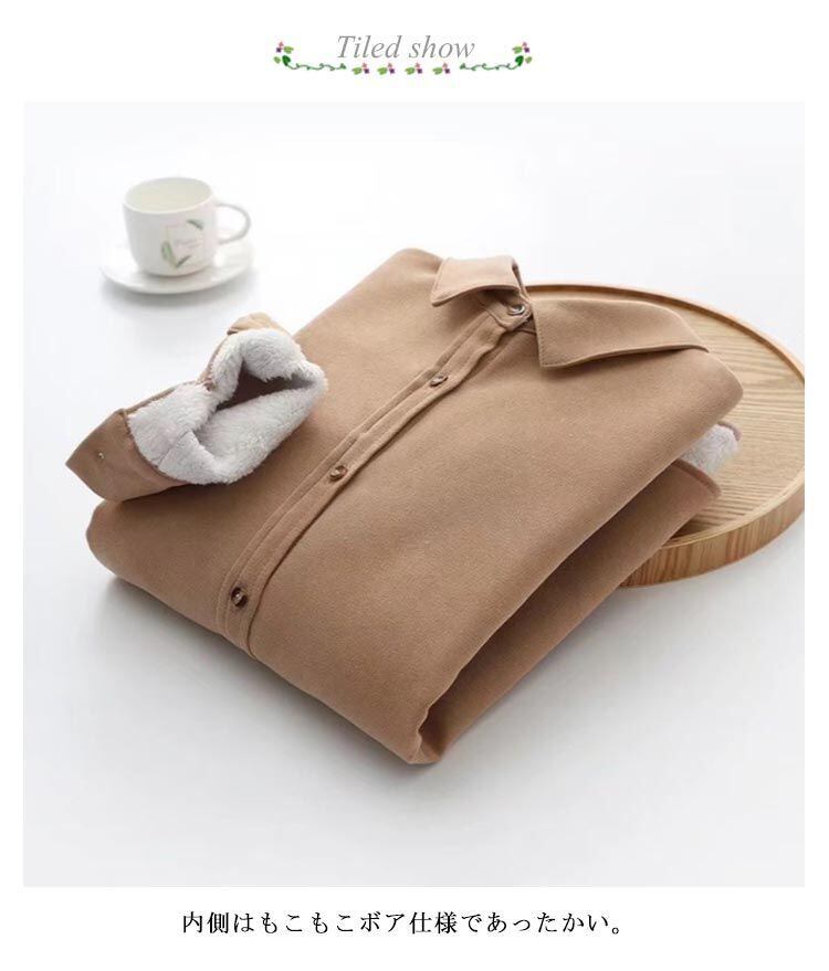 裏ボア シャツ レディース 長袖 トップス カジュアル 裏起毛シャツ シャツブラウス ブラウス 襟付きシャツ 無地 シンプル 暖かい きれいめ おしゃれ ボタン付き 前開き アウター 裏起毛 保温 オ#healt582895 | オキナ商店