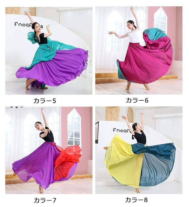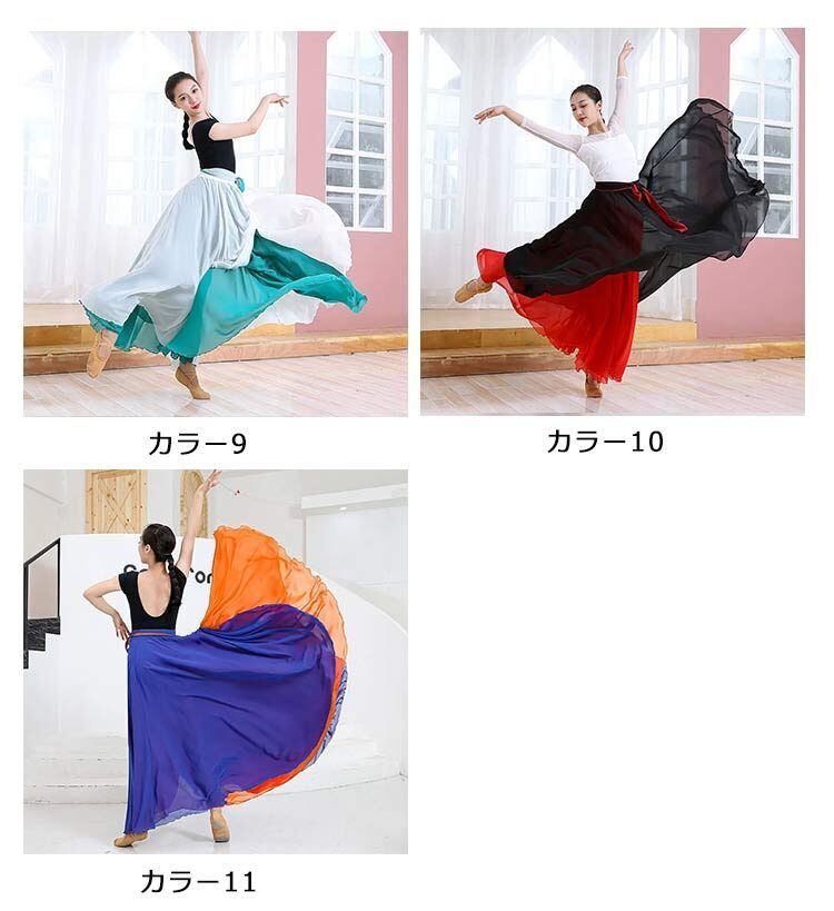 ダンス衣装 リバーシブル ベリーダンス レッスン着 レディース 11色 ロング コスチューム レッスンウェア ガールズ フレアスカート ダンス衣装 スカート リバーシブル 全円 シフォン マキシ丈 #cjfj144991 | オキナ商店
