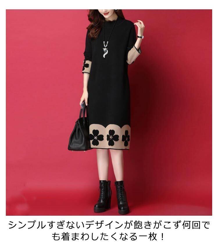 ワンピース エレガント ニットワンピース ニット ラウンドネック ワンピ 花柄 花柄 レディース 長袖 プリント セーターワンピース 膝丈 タイト 送料無料 ラウンドネック おしゃれ プルオーバー #cjfj144989 | オキナ商店
