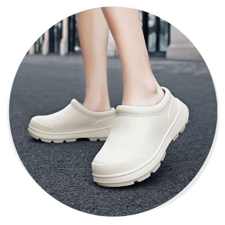広い履き口と丸みのあるゆったりしたつま先を採用したサボ仕様、これまでの防水シューズにない快適な履き心地を提供します。