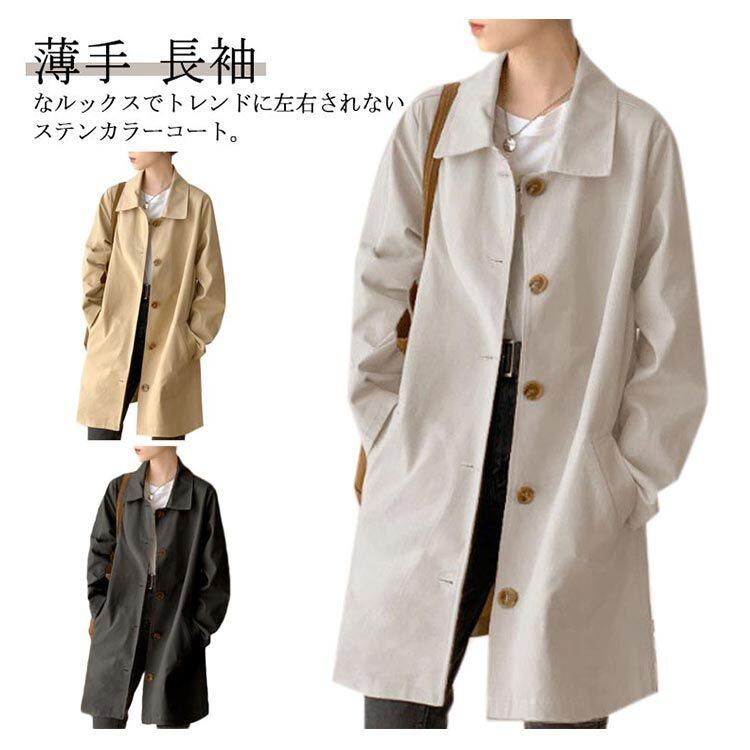 ステンカラーコート ミドル丈 スプリングコート 羽織り 薄手 長袖 ロングコート 無地 アウター ライトアウター レディース 大きいサイズ 春コート 通学 カジュアル きれいめ フェミニン 通勤 3#cjfj142727 | オキナ商店