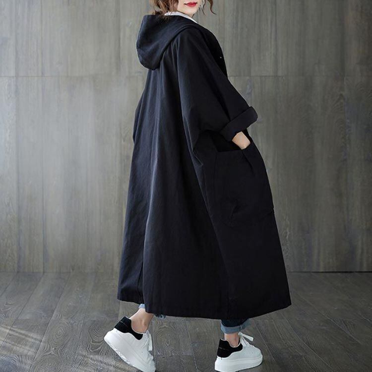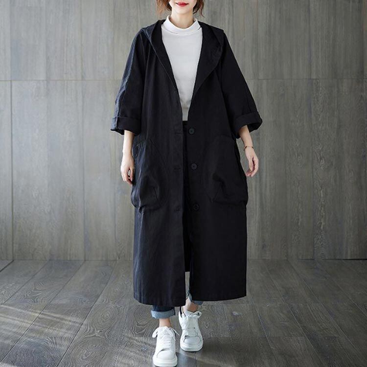 レディース 50代 フード付き 無地 薄手 オーバーサイズ 羽織 通学 ライトアウター ロングトレンチ トレンチコート ゆったり OL ロングコート 通勤 シンプル きれいめ 仕事 長袖 ポケット付#cjfj142728 | オキナ商店