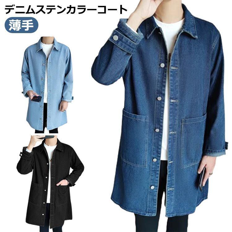 アウター デニムコート カジュアル ロングコート 春コート ロング丈 メンズ デニム ステンカラーコート 薄手 秋 春 コート 羽織り スプリングコート ジャケット ジージャン ライトアウター 春服 #kitsu605454 | オキナ商店