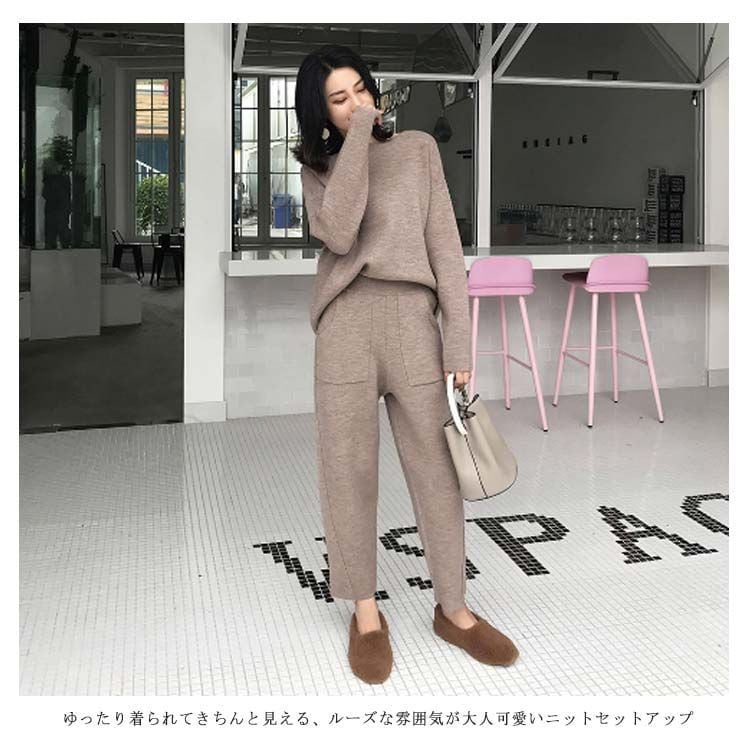 レディース ニットセットアップ 長袖 ニット オシャレ ゆったり プルオーバー デパートパンツ トップス きれいめ セーター パンツスーツ パンツ カジュアルセット 体型カバー 大人#yskma603230 | オキナ商店