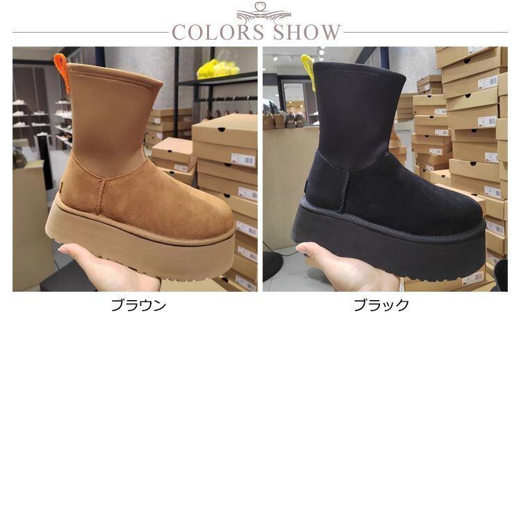 シープスキン 本革 ヒール4cm プラットフォーム ふわふわ チェルシー 厚底 ブーツ ムートンブーツ 厚底ブーツ サイドゴアブーツ 冬靴 レディース レディース チェルシー ボア ブーツ 裏起毛 滑#yuzuc601522 | オキナ商店