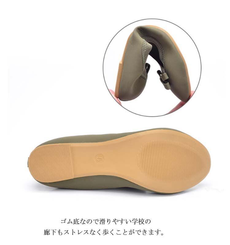 【長時間履いていても疲れにくい】長時間立っていても疲れにくいクッション性のあるソールを使用。ゴム底なので滑りやすい学校の廊下もストレスなく歩くことができます。