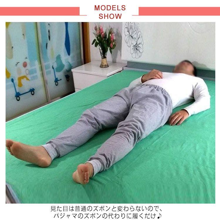 見た目は普通のズボンと変わらないので、パジャマのズボンの代わりに履くだけ♪