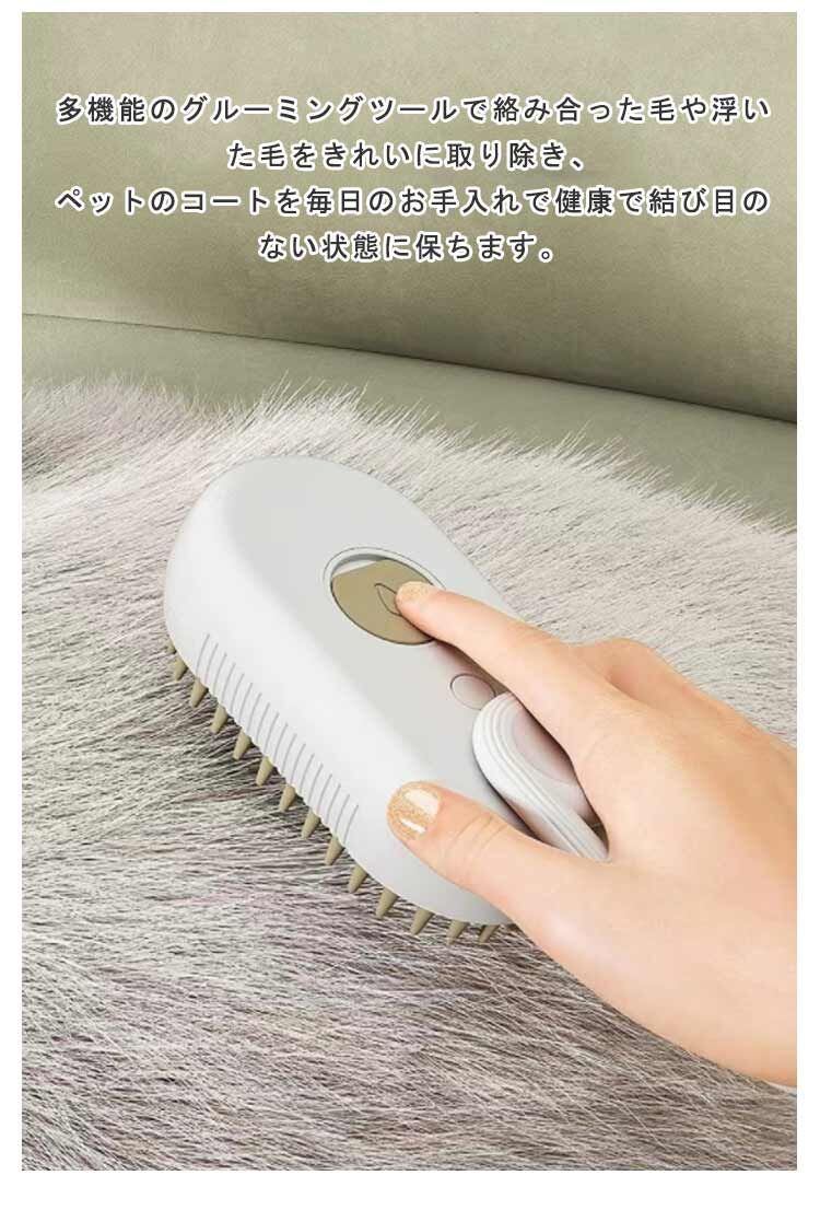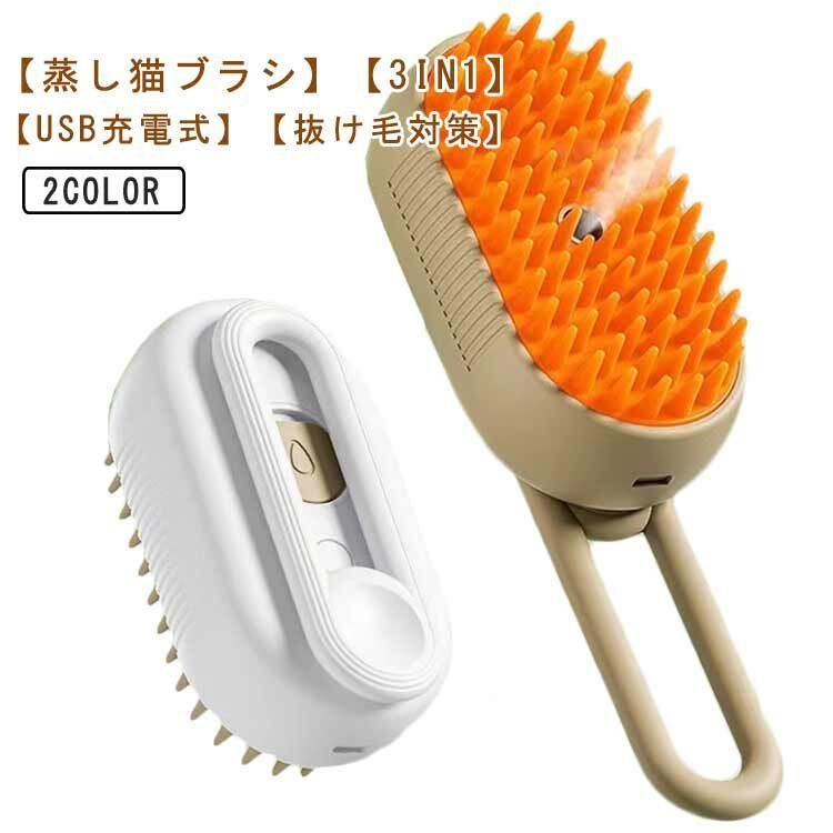 【蒸し猫ブラシ】【3in1】【USB充電式】【抜け毛対策】