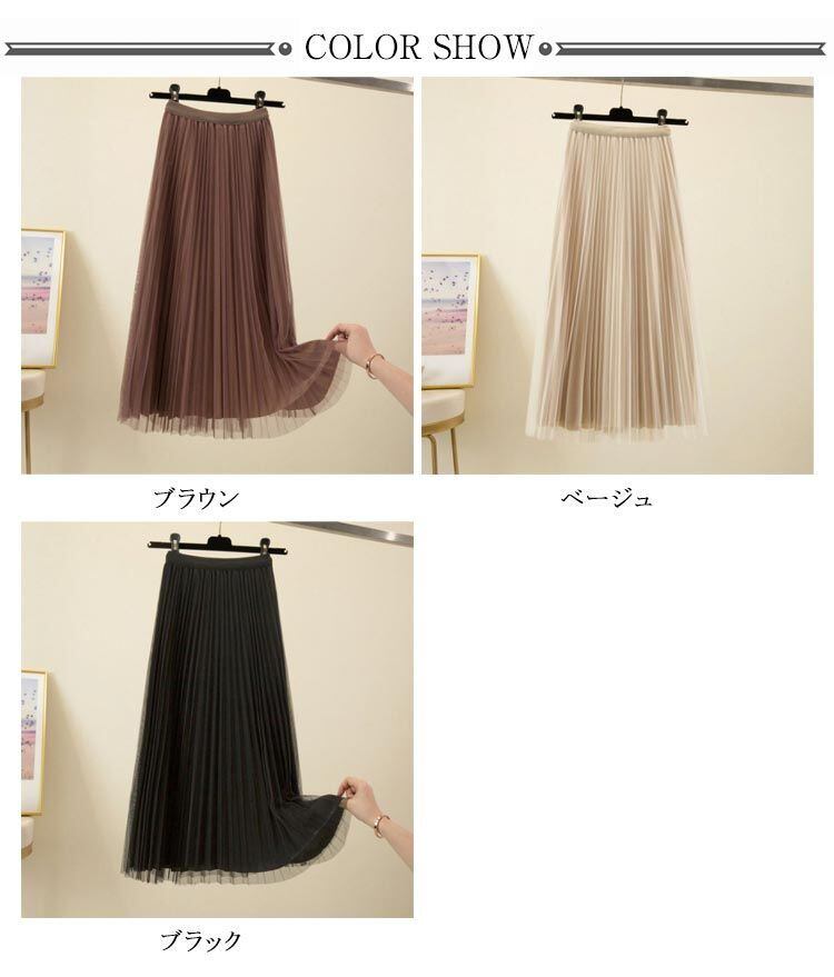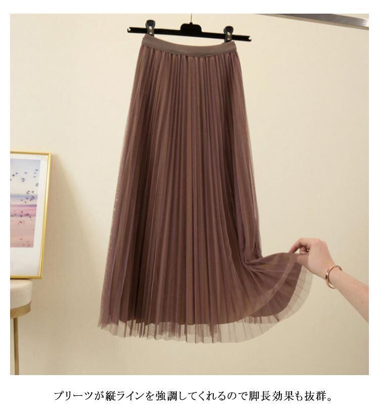 スカート 秋冬 Aライン スカート レディース 透け感 春 プリーツ チュールスカート ロングスカート お洒落 ロング フェミニン ウエストゴム チュール ふんわり 大人 きれいめ カジュアル 体型カ#tomin593254 | オキナ商店