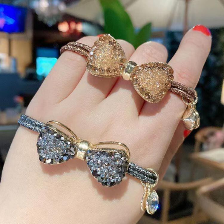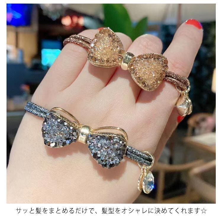 キラキラと煌めくラインストーンを埋め込んだ立体感のあるヘアゴムです。