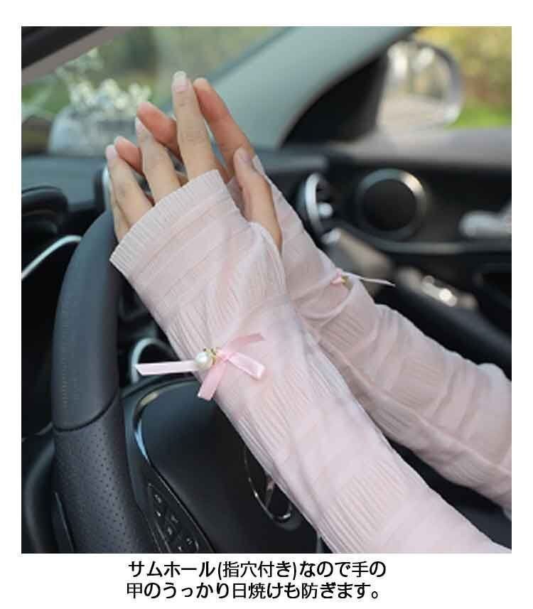 ランニング 女性用 シースルー ファッション グローブ リボン アームカバー アウトドア ロング レディース 涼しい 冷感 腕カバー 紫外線カット 指穴あり 夏 日焼け防止 袖 運転 自動車 アームカ#sowa6586796 | オキナ商店