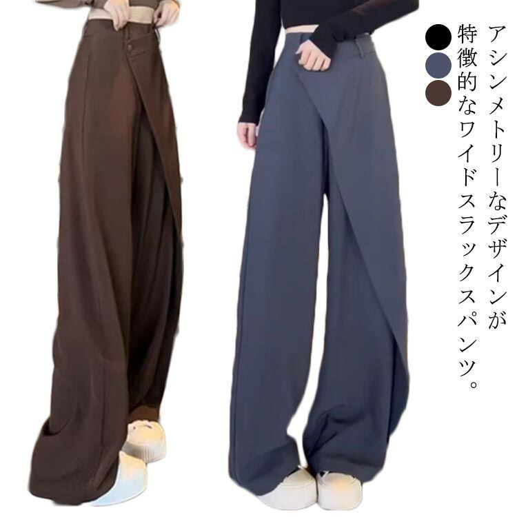 ワイドパンツ 春 スラックス アシンメトリー 秋 レディース ワイドパンツ ボトムス 大きいサイズ ハイウエスト きれいめ カジュアル 体型カバー 上品 きれいめ 通勤 20代 30代 40代#kitsu583069 | オキナ商店