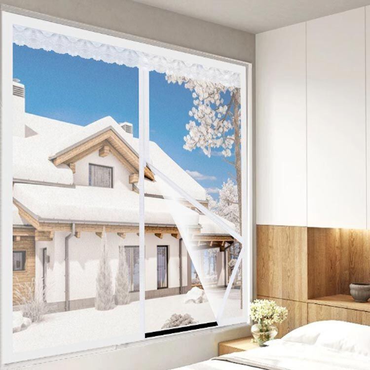 窓枠に貼るだけ!冷気を防ぐ断熱カーテンです。