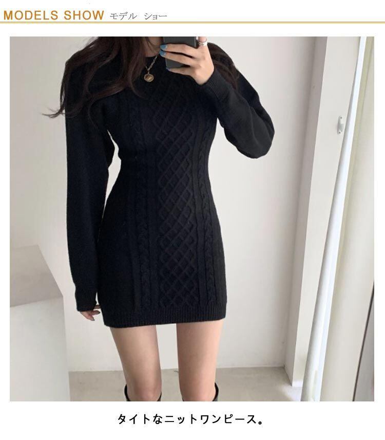 ミニ丈 ワンピース ニット 秋冬 レディース スリム ニットワンピース クルーネック ワンピース 長袖 バック開き フィット タイト ひざ上 ケーブル編み ワンピース 背中開き 大人 可愛い 大きいサ#tomin560097 | オキナ商店