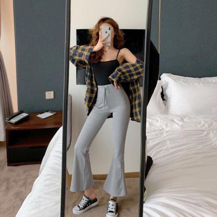 ウエストゴム レディース イージーパンツ ボトムス スウェットパンツ スポーツ 美脚効果 スウェットパンツ ハイウエスト パンツ レギンス フレアパンツ ストレッチ スエット 抜け感 ロング丈 ワイド#rabubi581212 | オキナ商店