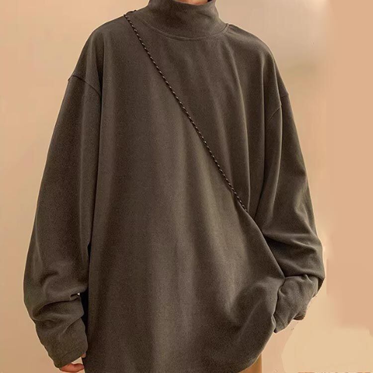 Tシャツ インナー ロンT モックネック メンズ 韓国風 裏起毛 ビッグシルエット トップス モックネック ハイネック 長袖 防寒 ゆったり シンプル 無地 春服 秋服#rabubi581205 | オキナ商店