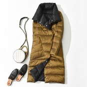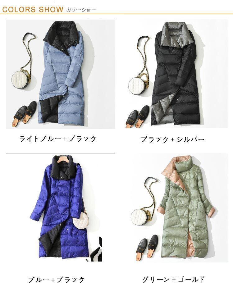 リバーシブル レディース ダウンコート 撥水 おしゃれ バイカラー ロング フードなし ダウン90% 薄手 軽量 スタンドカラー あったか アウター ダウンジャケット 暖かい 大きいサイズ スリム お#lucky564733 | オキナ商店
