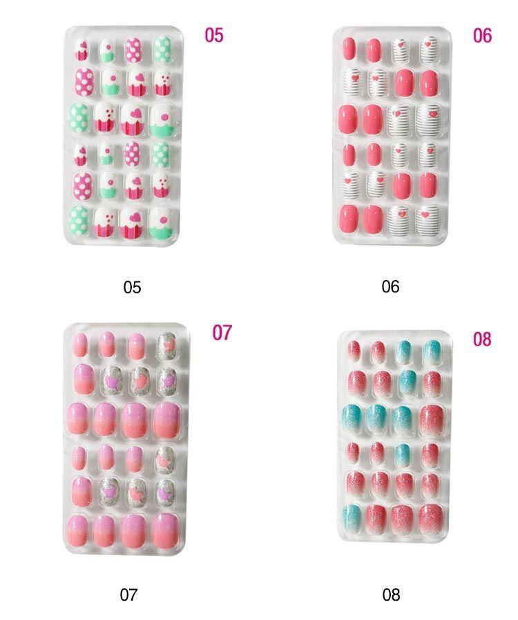 貼るだけ 24枚入り キッズ つけ爪 ネイルチップ 女の子 ワンタッチ ネイルステッカー キッズ 付け爪 3dネイル ネイルチップ ネイル飾り ネイルアート ネイルケア 付け爪 はがせる セルフネイル#kitsu567537 | オキナ商店