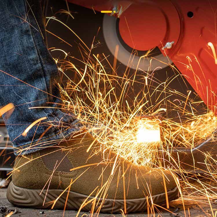 つま先部分に鋼製の先芯を入れた、金槌や刃物などからつま先を保護できます。