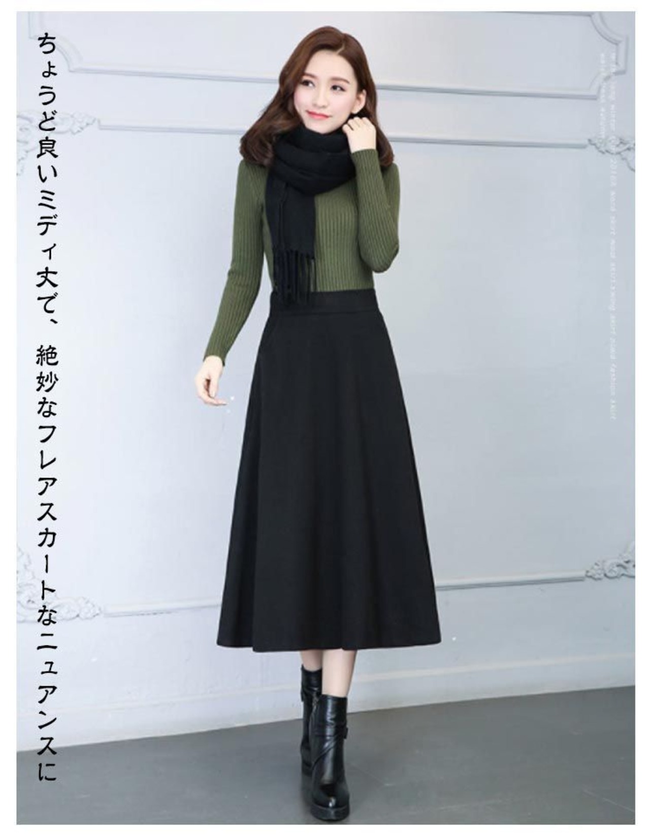 送料無料 ロングスカート 無地 レディース ロング フレア 冬 スカート レディース 秋 マキシ丈 ロング丈 秋冬 大きいサイズ 春 マキシスカート ファッション フレアスカート ポケット付き ウエス#kitsu567512 | オキナ商店