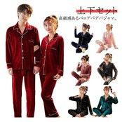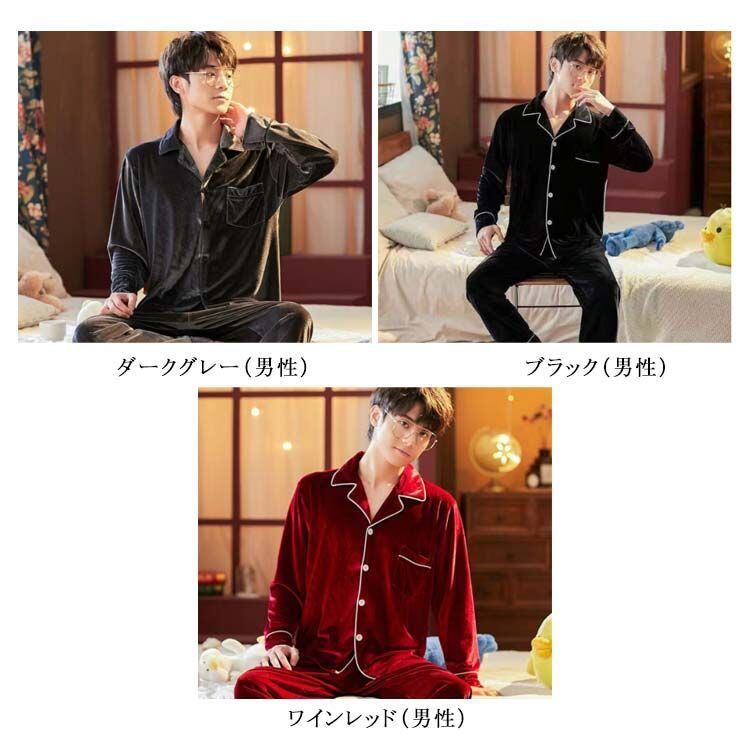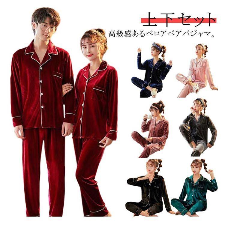 前開き ペアパジャマ ペアパジャマ 部屋着 パジャマ ペアルック ナイトウエア 長袖 カップル ルームウェア ベロア オープンカラー 入院 小さいサイズ 春 秋冬 大きいサイズ ベルベット バレンタイ#kitsu567508 | オキナ商店