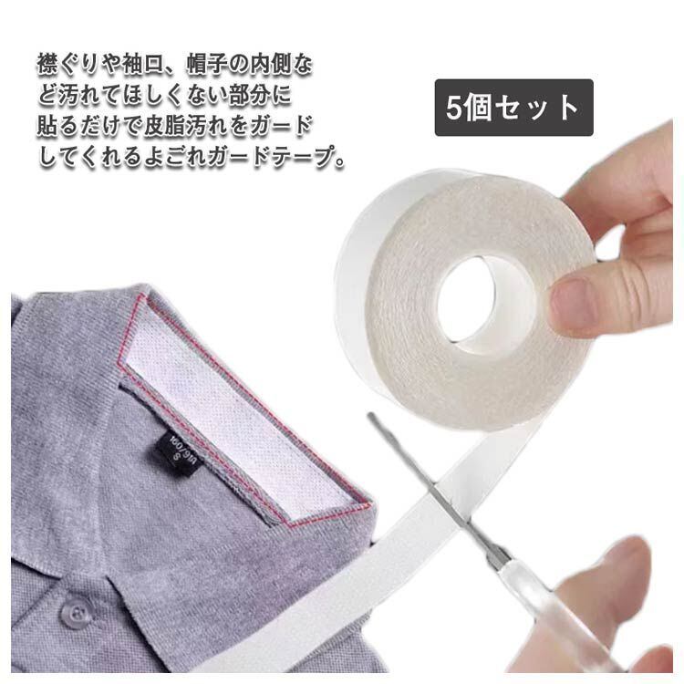 防止テープ ワイシャツ よごれガードテープ 2.5cm×8m 皮脂汚れ防止 汗取りパッド 5個セット♪襟 貼るだけカンタン 汗吸収 5個セット♪襟 送料無料 汗取りシート 襟口や袖 キャップ 帽子 汗#gurug572801 | オキナ商店