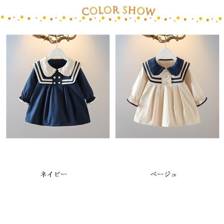 赤ちゃん 幼児 韓国ファッション ベビー 入園式 ワンピース 春服 キッズ 新生児 長袖 送料無料 出産祝い セーラー風 お姫様ドレス ワンピース 73 80 90 100 可愛い ワンピースドレス#gurug572794 | オキナ商店
