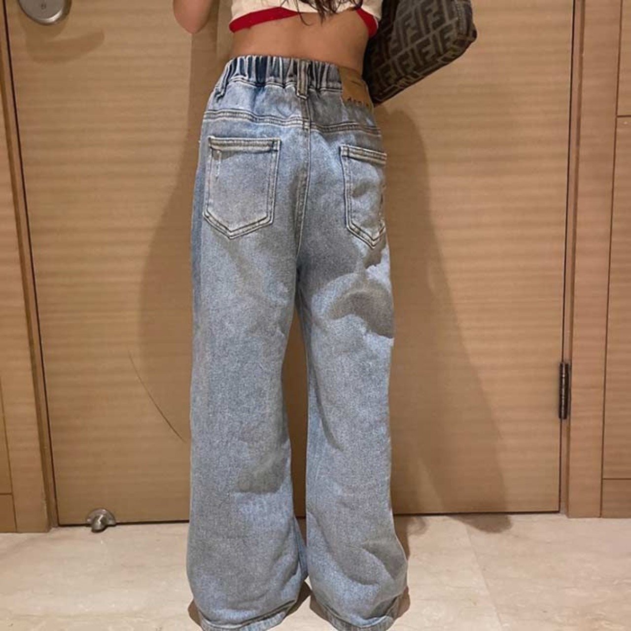 キッズ ワイドパンツ ロングパンツ デニム ダメージ加工 女の子 ウェストゴム パンツ 170 小学生 ジーパン 送料無料 130 140 150 160 キッズ ダンス衣装 長ズボン ジーンズ こど#gurug572786 | オキナ商店