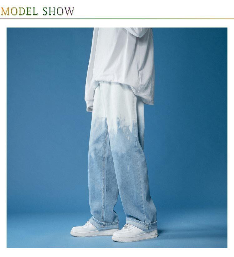 メンズ ロングパンツ ダンス 大きいサイズ ゆったり グラデーション ジーンズ ストレート 薄手 夏 デニムパンツ ワイド タイダイ染め ジーパン 送料無料 衣装 ストリート系 原宿系 春夏 ブラック#gurug572785 | オキナ商店