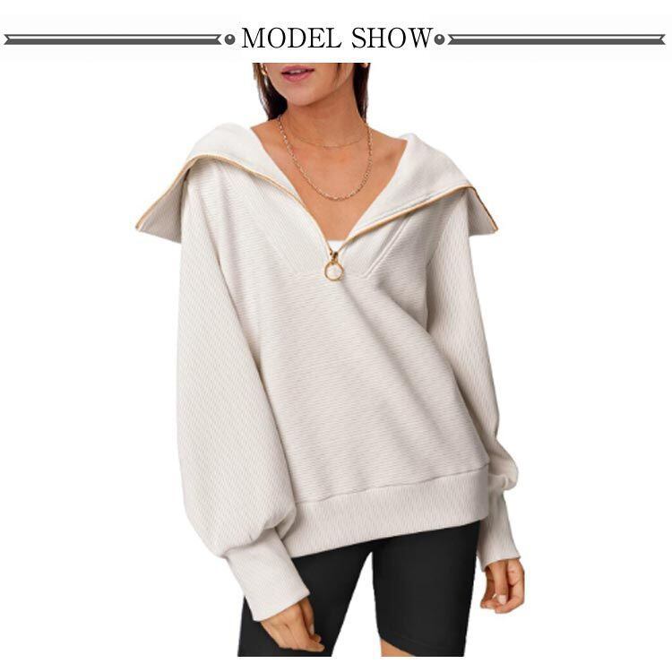 セーラーカラー トップス セーラーカラー ハーフジップ 長袖 スウェット セーラーカラー プルオーバー 送料無料 パフスリーブ タートルネック ボリューム袖 パフスリーブ オーバーサイズ 大きいサイズ#frien562457 | オキナ商店
