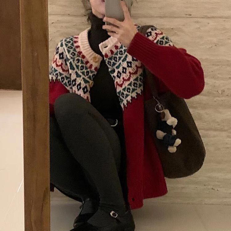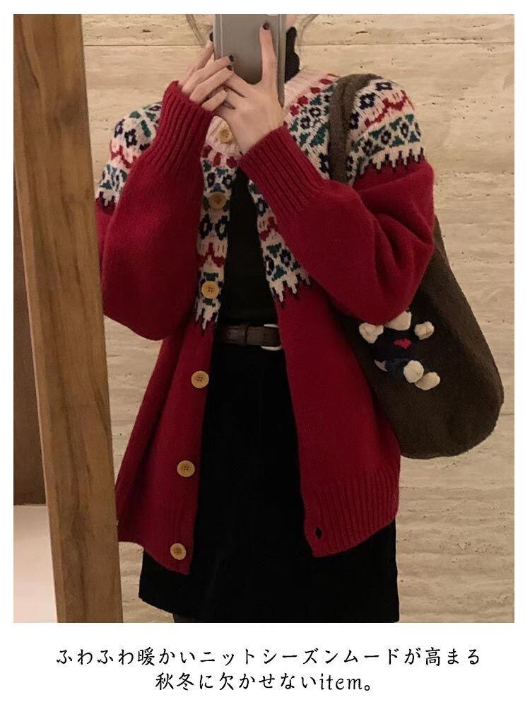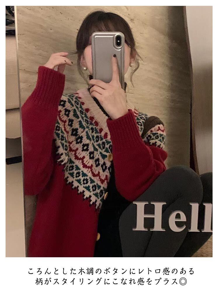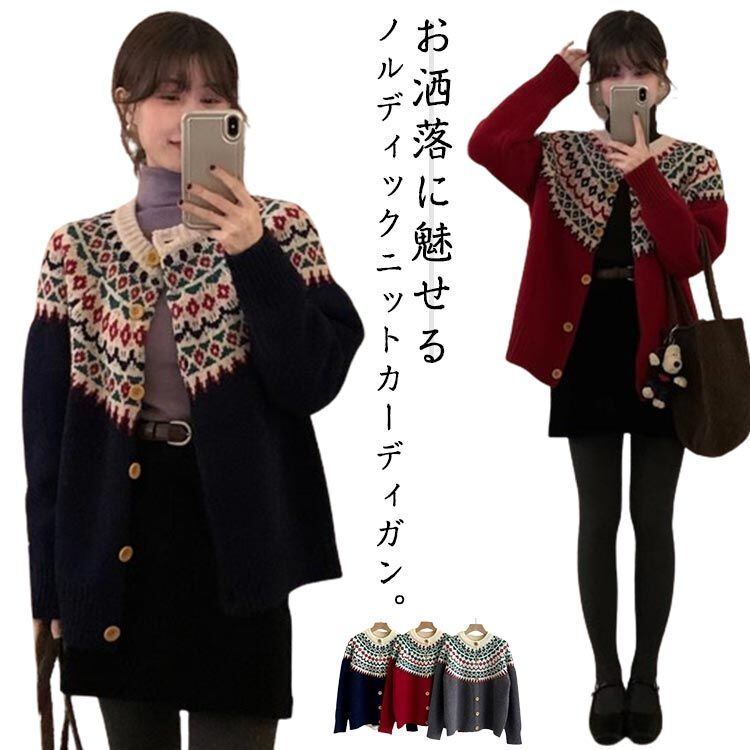 秋服 ニット クルーネック 北欧 レディース レトロ ニットカーディガン 長袖 カーディガン カーディガン 冬服 セーター トップス 柔らか あったか 羽織り 2023秋冬新作#frien562458 | オキナ商店