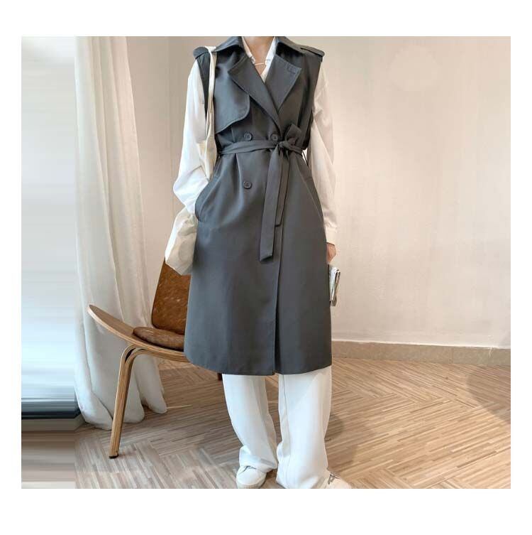 ロング丈 ロングジレ ボタン ノーカラー ジレ トップス ベスト コート ジャケット ロング ロングベスト 袖なし ポケット ドロスト ノースリーブ 羽織り オフィス 通勤 OL 重ね着 無地 レ#cjfj137467 | オキナ商店