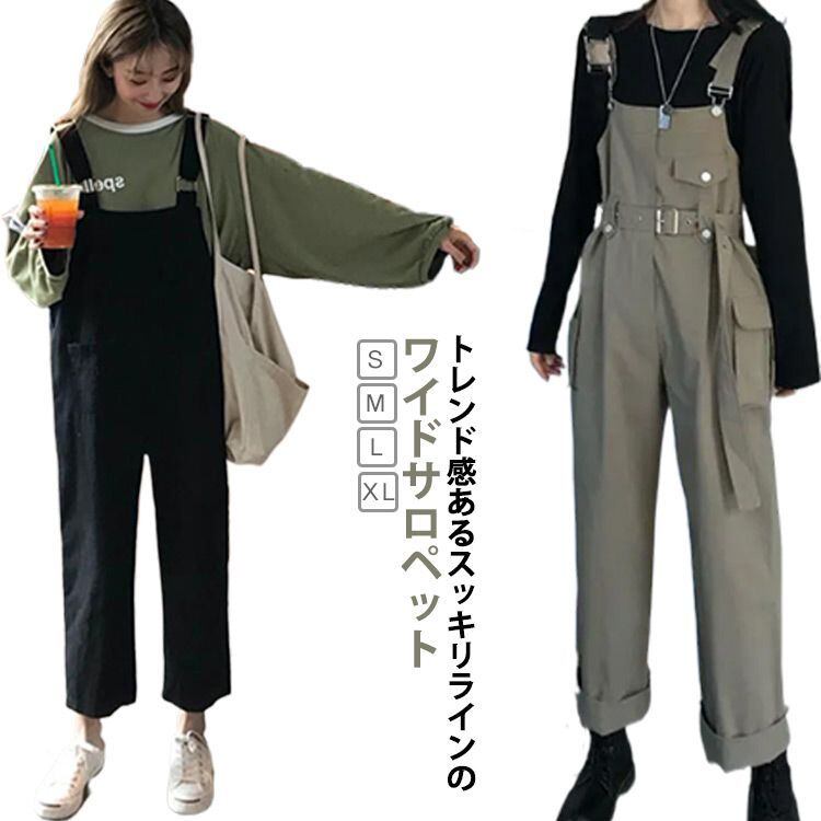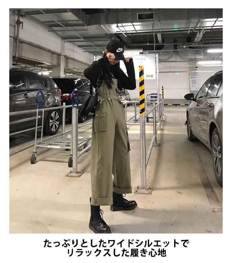 レディース シンプル 体型カバー カーゴパンツ OL サロペット オールインワン 大きいサイズ つなぎ ワイドパンツ パンツ レイヤード 着痩せ 重ね着 春夏秋 きれいめ 無地 おしゃれ オーバーオ#cjfj137463 | オキナ商店