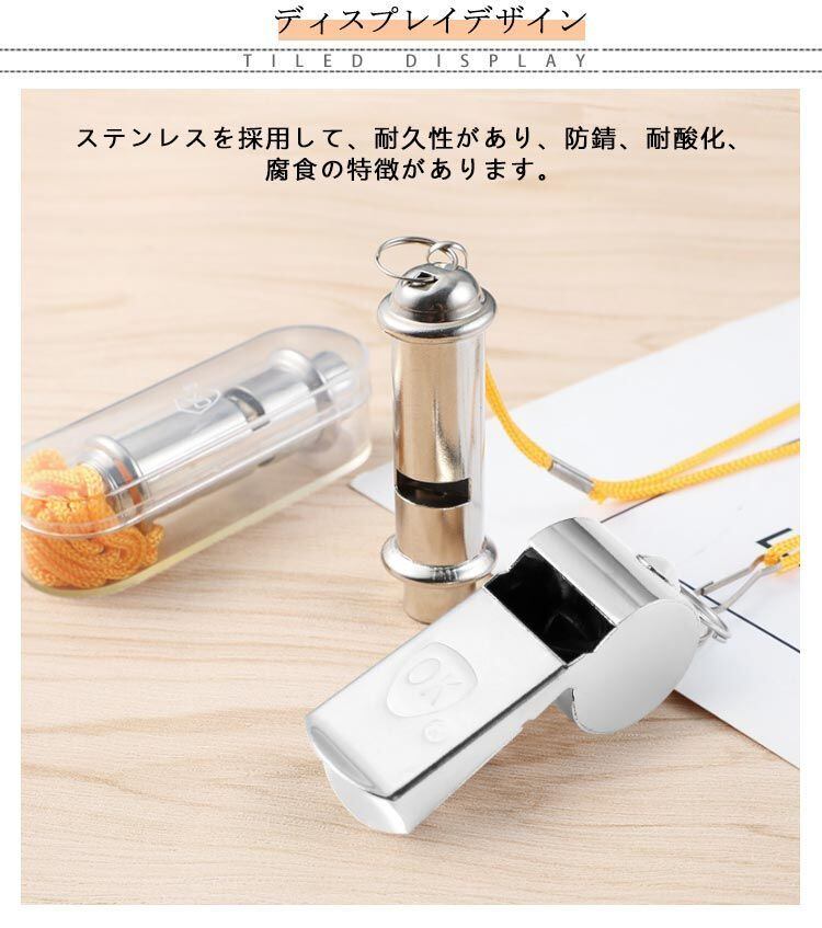 緊急ホイッスル ステンレス製 ホイッスル アウトドア ホイッスル 救援時 笛 ジム 災害時 学校 ネックストラップ付き 防災用品 ハイキング コーチ 審判 野外活動 軽量 防犯グッズ 子供用 大人用#yuzuc566368 | オキナ商店